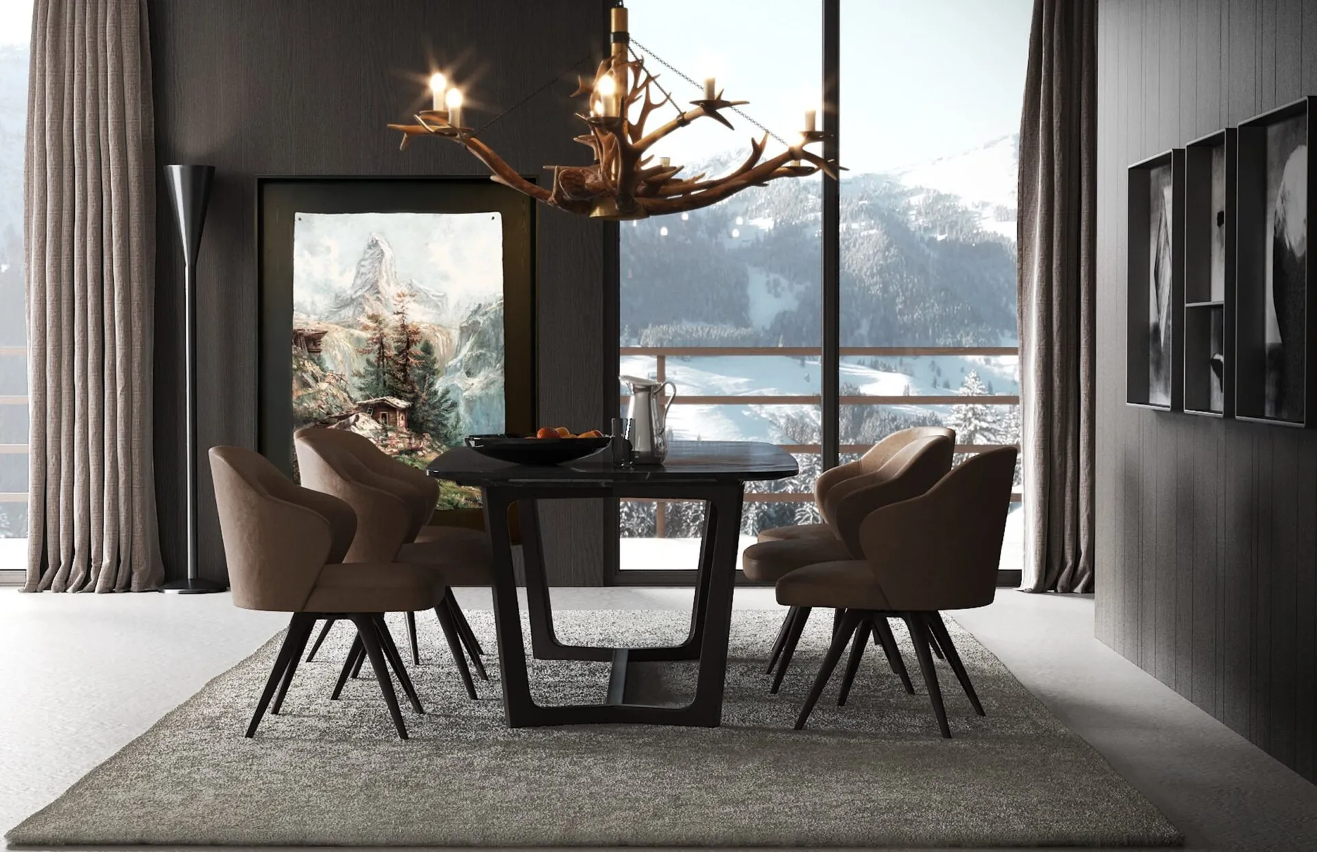 An authentic print featuring mountains in the background, where the peaks are still capped with snow, while at the hut, it appears to be summer. Children play joyfully in the grass, capturing the essence of two seasons harmoniously converging.