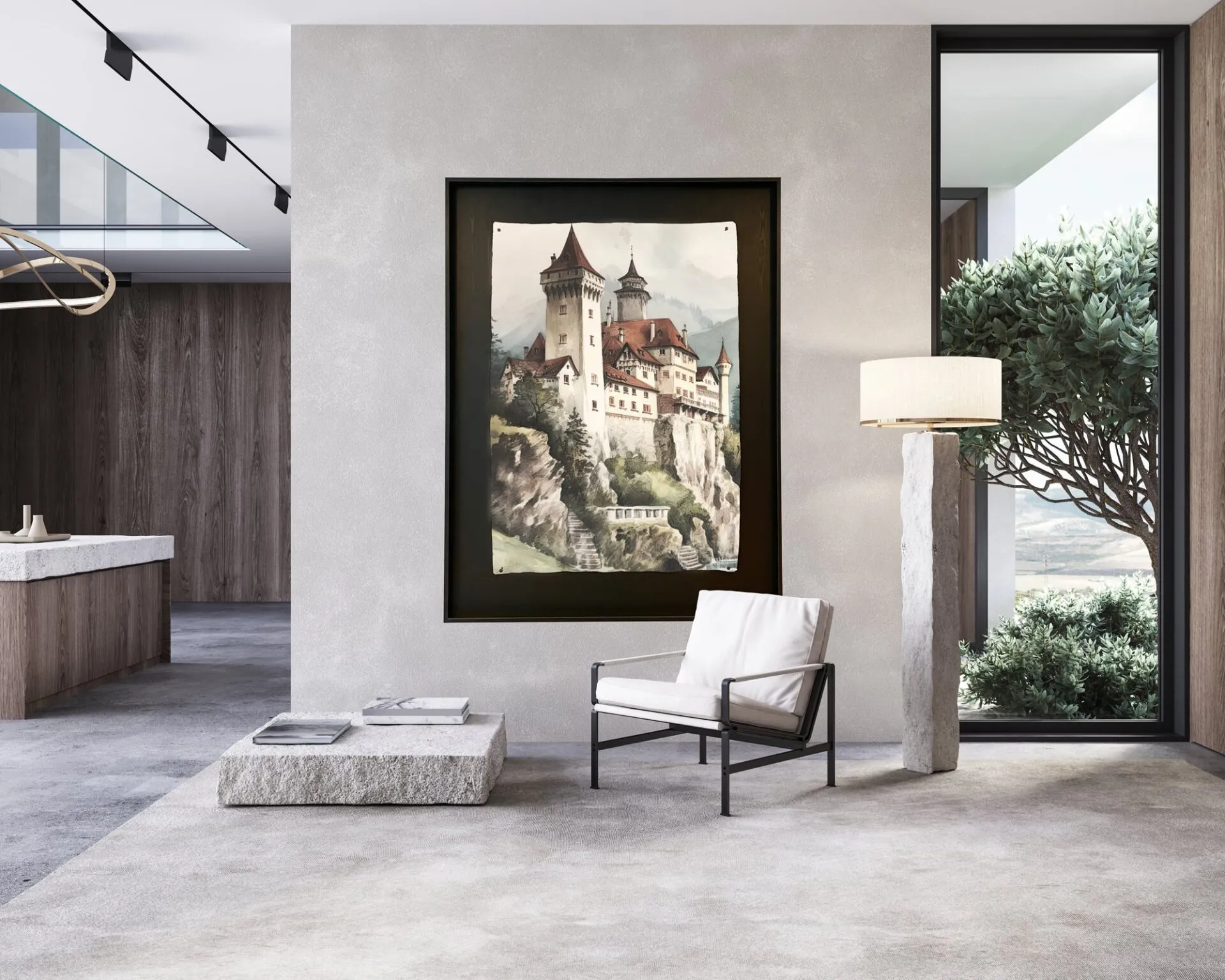 Lose yourself in this enchanting print, where a majestic castle reigns amidst a fairytale landscape of lush forests and imposing mountains. The Gothic architecture of the castle has inspired countless fairy tales, and the intricate details of the print capture the magic of this world perfectly.