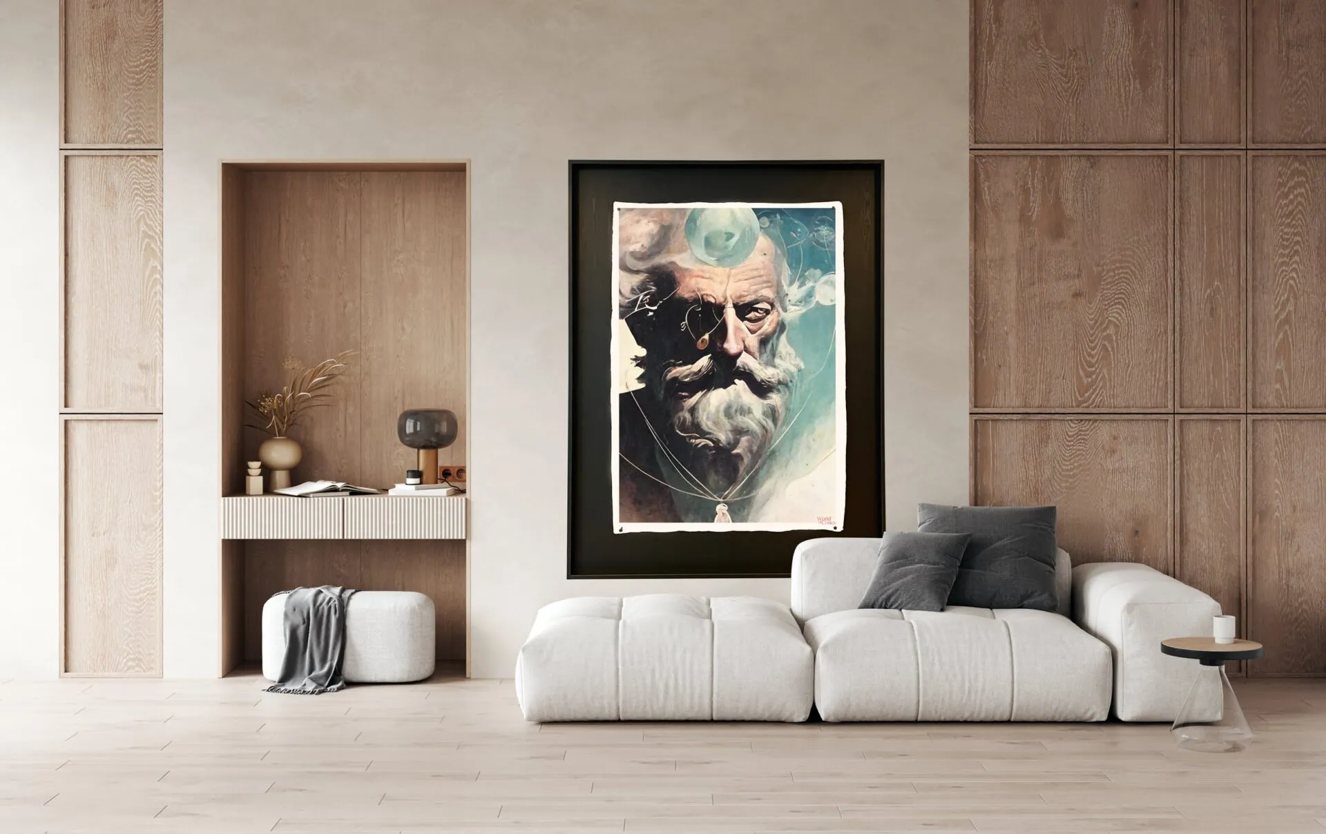 The portrait of this man is surrounded by an ethereal atmosphere of lightness and softness, creating a sense of mystery and imagination.