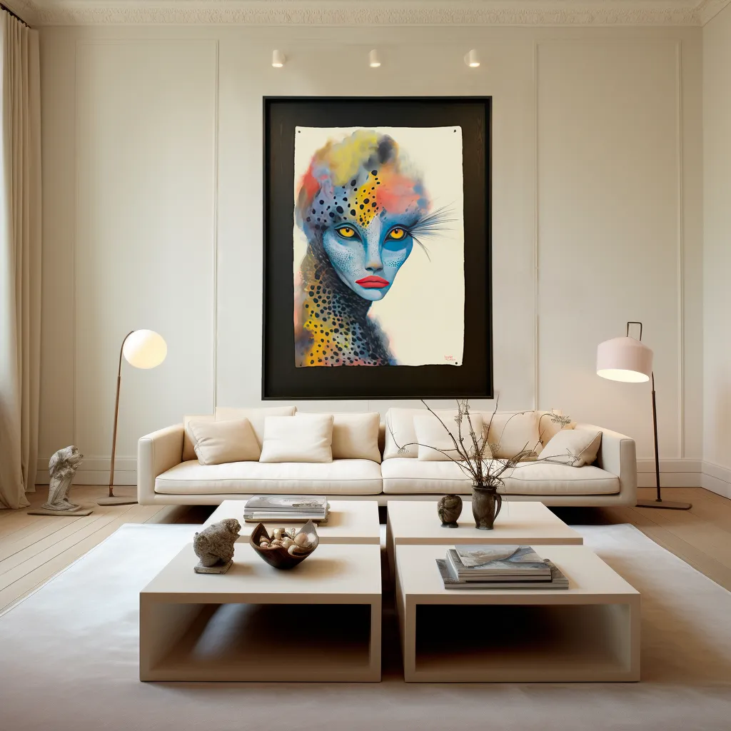 Stella Panthera is a striking artwork that combines the strength of a panther with the mystique of a woman. With intense colors and a penetrating gaze, it creates a captivating and enchanting image.