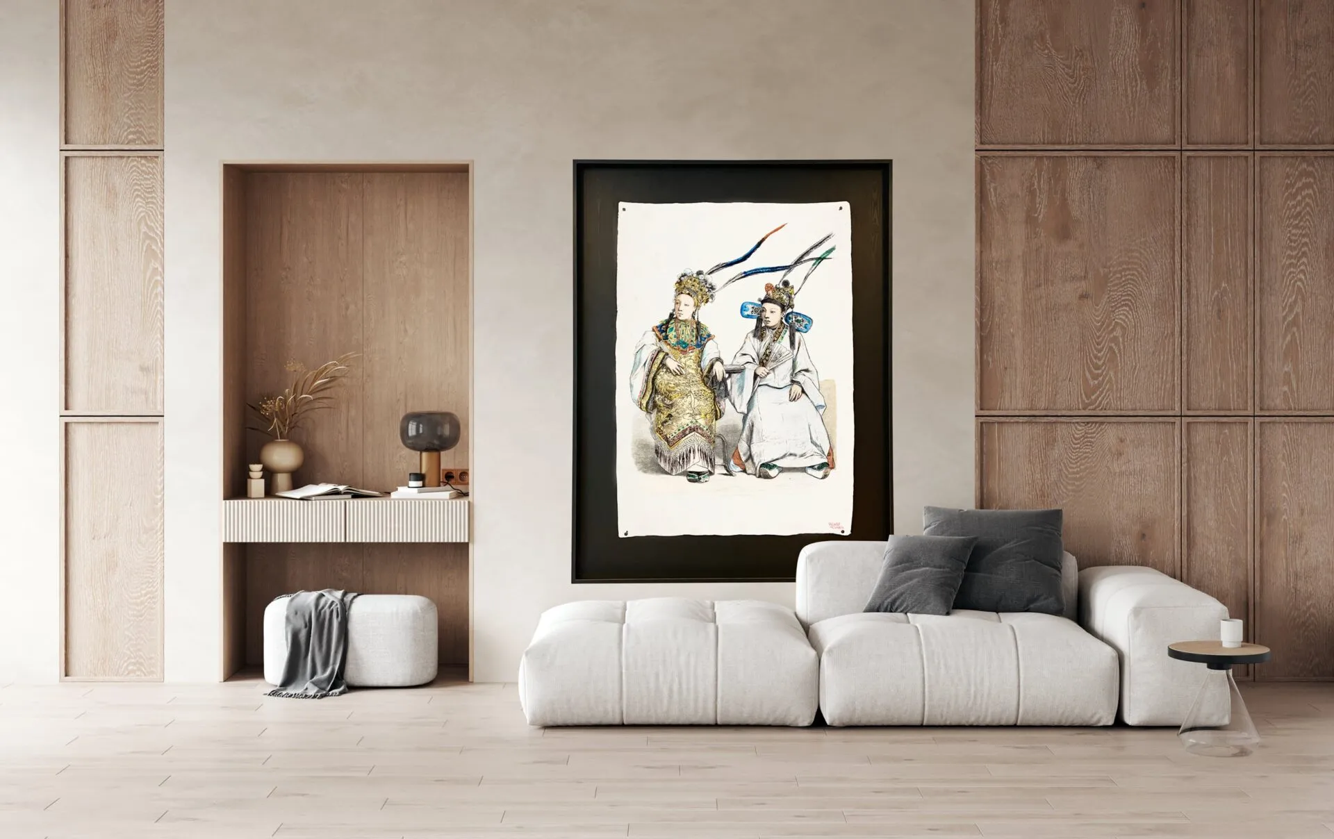 This impressive print of two sages from the East, adorned with their splendid headdresses, is a true work of art. The myriad details make it an exceptionally captivating piece, causing you to pause and take in every aspect. The sages exude wisdom and mystique, adding an Eastern touch to any space they adorn.