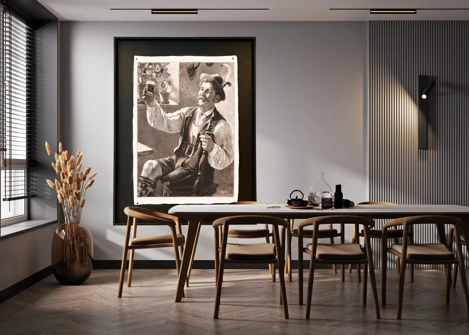 Each piece of artwork is finished with four hand-forged nails. The traditional nails are crafted by hand, making each nail unique. These nails provide the artwork with an authentic feel and ensure that the artwork floats within the frame.